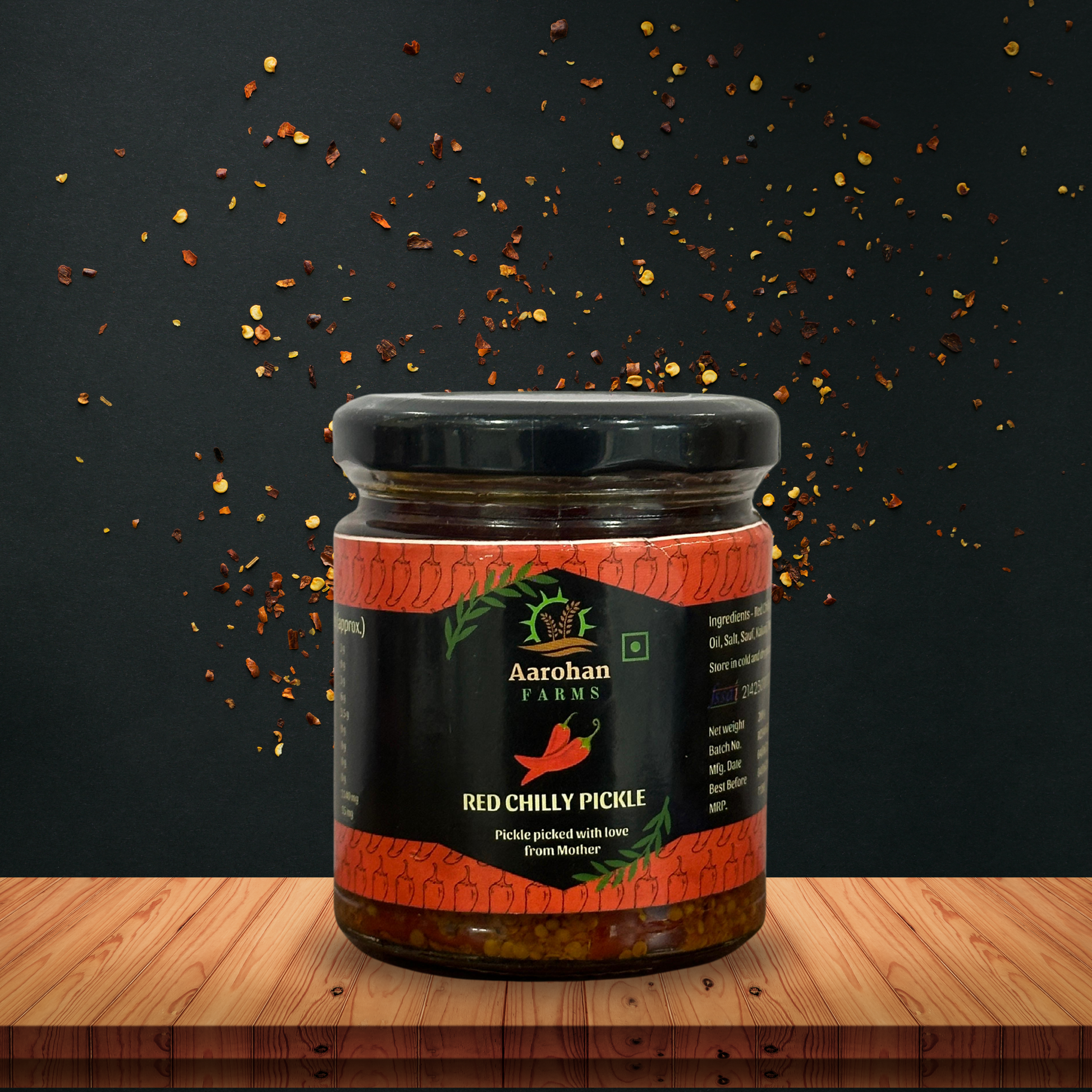 • Made with handpicked red chillies, sun-cured and aged in cold-pressed mustard oil with a bold blend of traditional Indian spices, Aarohan’s red chilli pickle is a fiery treat for spice lovers.
