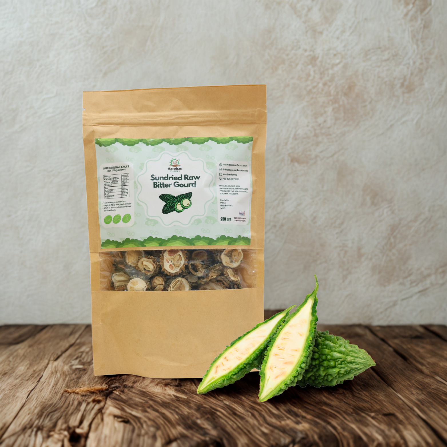 - Sourced from our organic farm and sun-dried to perfection, Aarohan’s bitter gourd (karela) retains its distinct flavour and nutritional benefits without any preservatives or additives. .